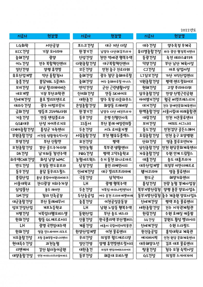 시공실적 알림 (2022년 주요현장)