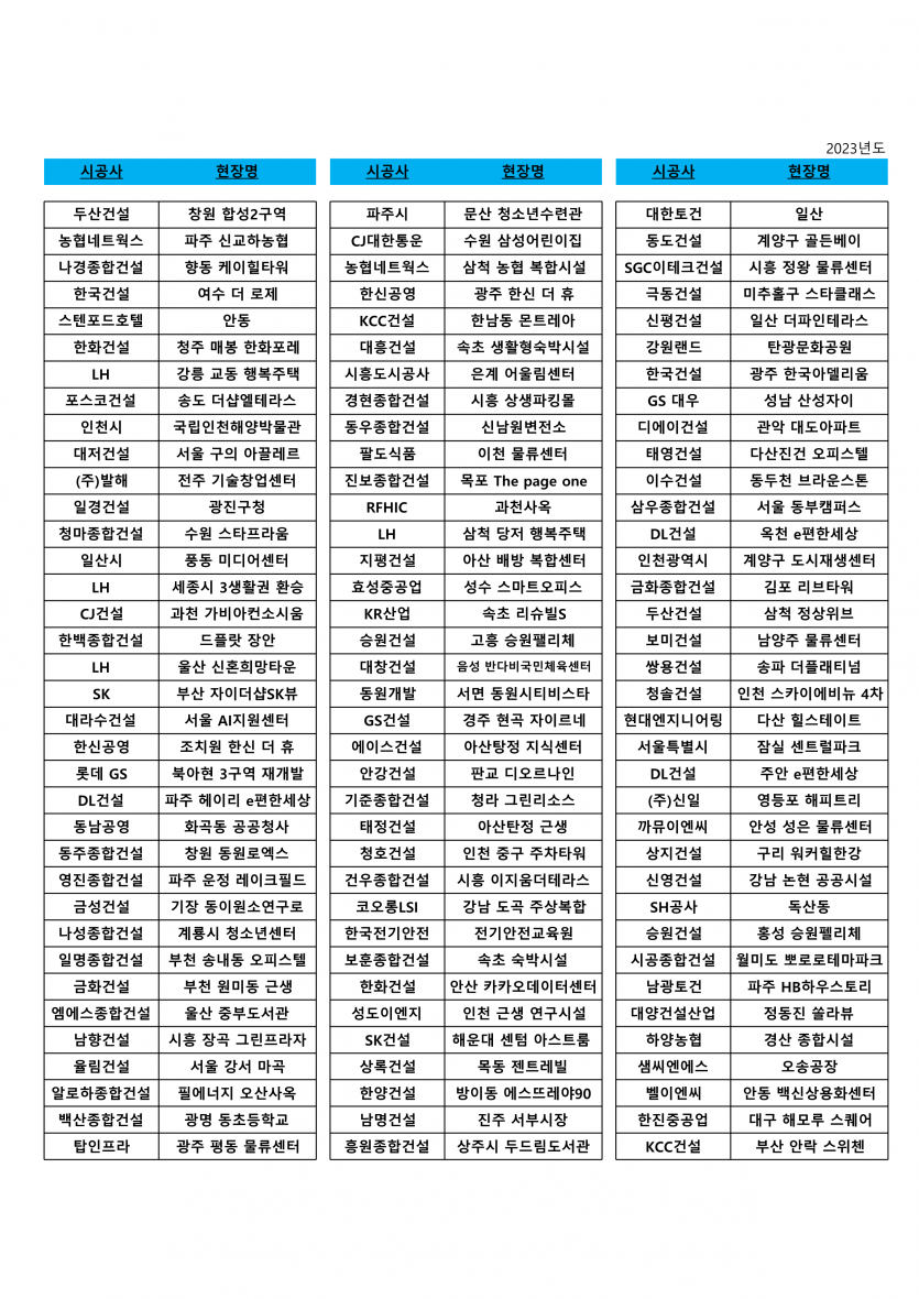 시공실적 알림 (2023년 주요현장)
